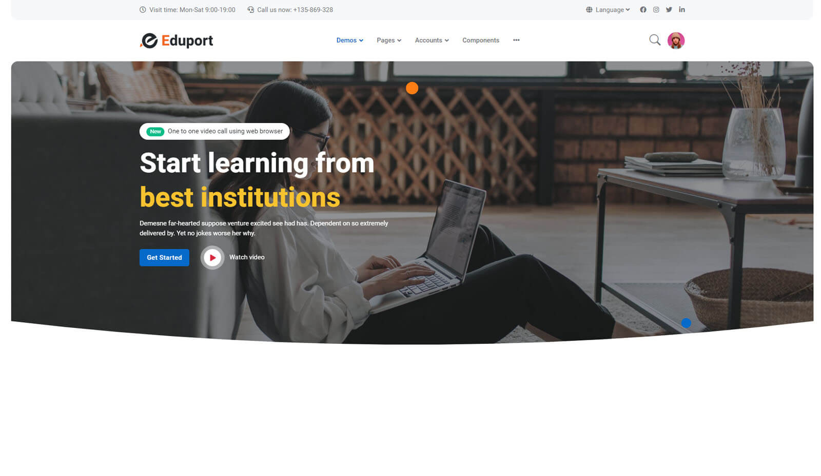 Eduport comes with many Hero(banner) styles. Click on below images to view design and code.